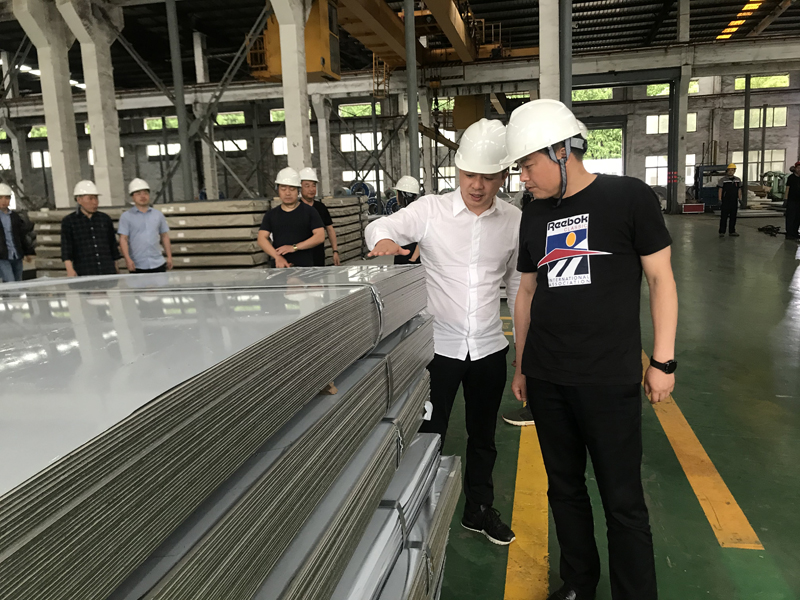 5月19日下午,浙江省湖州市德清縣副縣長楊國志帶領招商、經信、發(fā)改、環(huán)保等部門相關負責人,至無錫青控不銹鋼有限公司加工倉儲基地進行考察。期間,考察組先行參觀了車間環(huán)境、加工設備、鋼卷庫存以及鋼板產品等,對廠區(qū)管理、生產流程等細節(jié)方面做了細致詢問,隨后進行了座談交流,了解建造廠房所需的場地面積、配套設